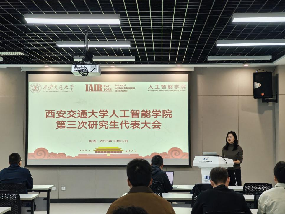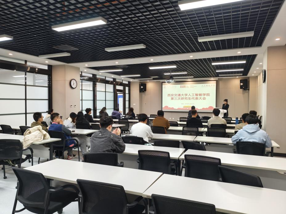 10月22日,西安交通大学人工智能学院第三次研究生代表大会在创新港校区泓理楼4-3288顺利召开。学院党委副书记李杰老师、团委书记张驰副教授以及校研会主席团成员曹蓉等出席了本次会议。学院的30名研究生代表齐聚一堂,响应新号召、奋斗新时代、奋进新征程,共同谱写西安交通大学新时代的华彩篇章。
