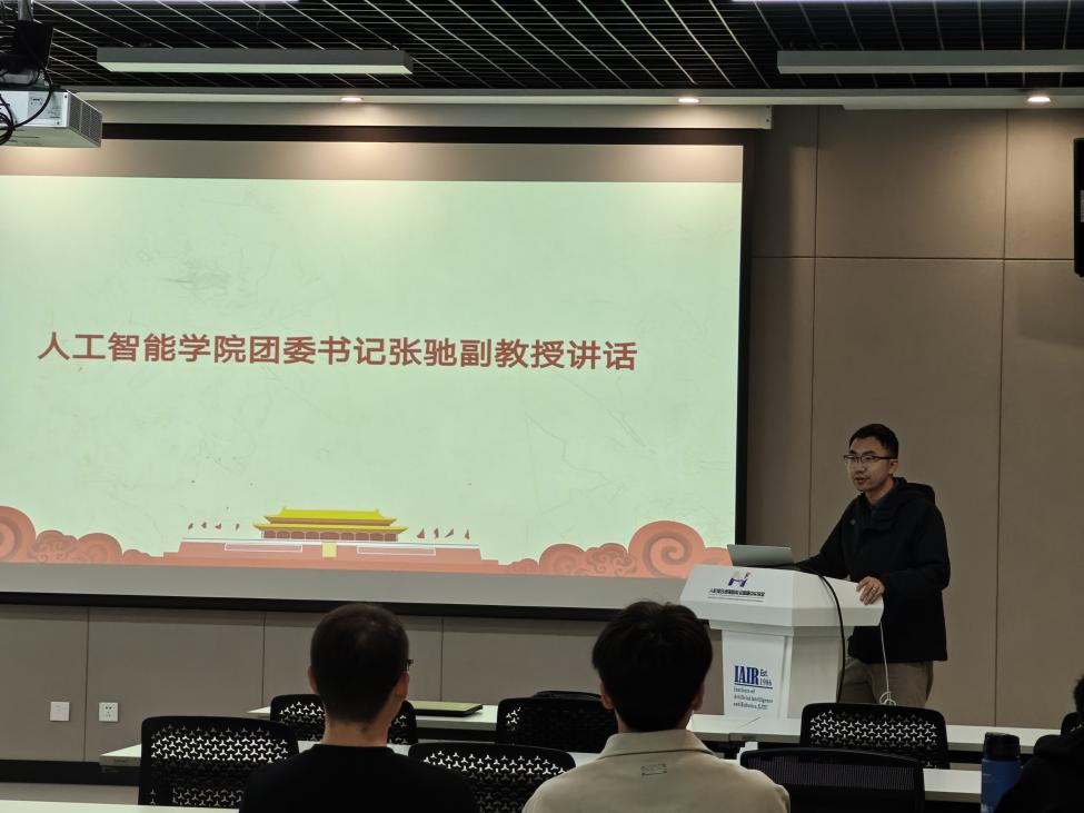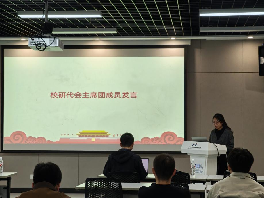 首先,张驰副教授代表人工智能学院团委向大会的召开表示热烈祝贺。他指出研究生代表大会是研究生依法依规参与学校事务的一个重要途径,愿同学们在科研之余,能够积极参与公共事务,将个人发展融入集体事业,在服务同学、奉献集体中实现自我价值。