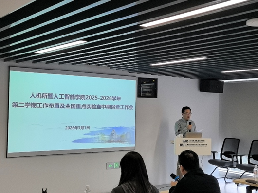 202631日,人机所暨人工智能学院新学期工作布置及全国重点实验室中期检查推进会在曲江校区西一楼召开。会议详细传达学校2026年度重点工作会议精神,全面部署新学期重点工作,深入推进人机混合增强智能全国重点实验室中期检查各项工作。人工智能学院副院长、全国重点实验室副主任孙宏滨主持会议,学院全体教职工120余人参加会议。
