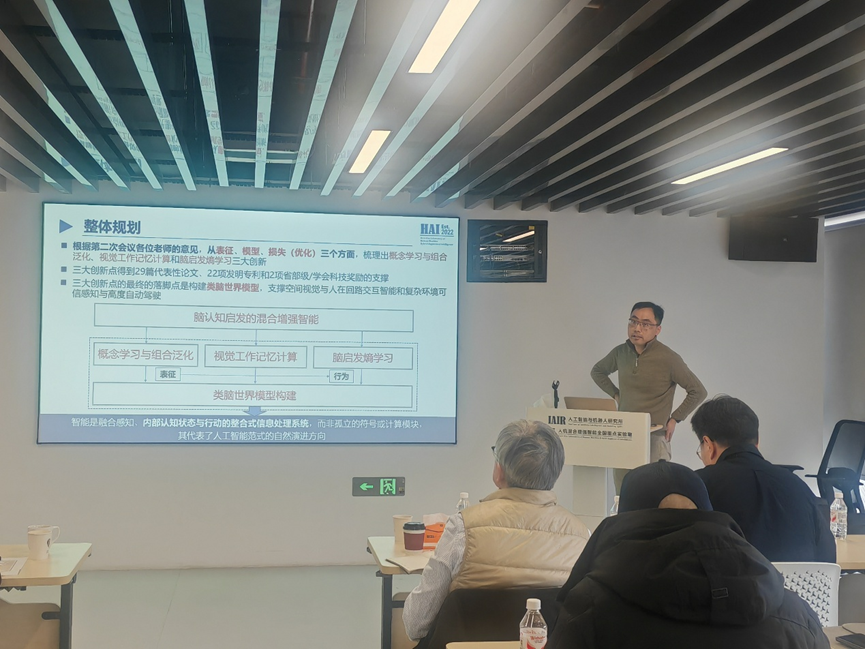 会议第二阶段召开全国重点实验室中期检查工作推进会。各研究方向负责人分别汇报了实验室建设以来的阶段性成果:杜少毅教授代表总体组介绍了实验室整体建设进展;张雪涛教授围绕“人在回路的混合增强智能”汇报了相关研究突破;周三平教授聚焦“脑认知启发的混合增强智能”展示了前沿探索成果;房建武副教授就“复杂环境可信感知与高度自动驾驶”介绍了关键技术攻关情况;何一聪教授围绕“空间视觉与人在回路交互智能”汇报了系统集成进展;夏天副教授代表“新型混合智能计算架构、芯片与平台”方向展示了硬件与平台建设成果。