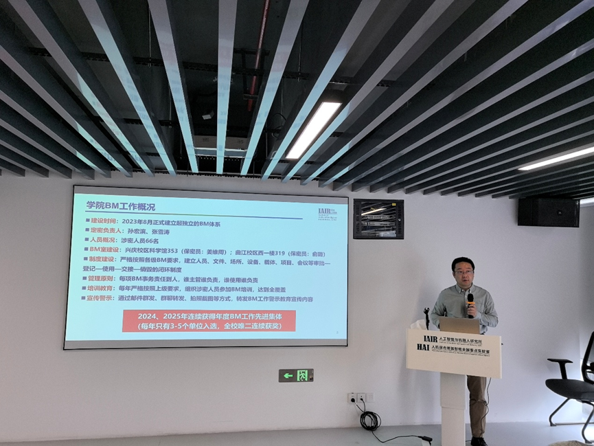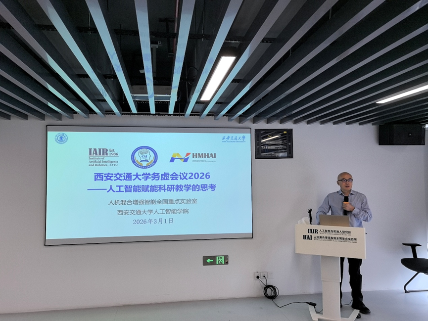 2026年3月1日,人机所暨人工智能学院新学期工作布置及全国重点实验室中期检查推进会在曲江校区西一楼召开。会议详细传达学校2026年度重点工作会议精神,全面部署新学期重点工作,深入推进人机混合增强智能全国重点实验室中期检查各项工作。人工智能学院副院长、全国重点实验室副主任孙宏滨主持会议,学院全体教职工120余人参加会议。
