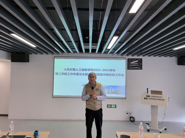 郑南宁教授以“3+1”高度概括本学期重点工作:第一,全力做好全国重点实验室中期评估。这是学院四十年来面临的最艰巨任务之一,事关实验室建设成效与团队未来发展,全体教师要以高度的责任感和使命感投入准备工作;第二,高质量推进新一代人工智能重点研发项目实施。该项目是学院首次获得的国家级定向重点研发项目,总规模1.7亿元,备受学术界和产业界关注。该项目不仅是科研实力的体现,更承担着引领中国人工智能发展方向的重任,全体教师要强化协同、通力合作,确保项目高质量完成;第三,深化育人模式改革,强化教师自身发展。面对人工智能带来的知识生产与学习方式变革,学院要加快育人转型。在研究生培养方面,推动科研与育人深度融合,持续产出高水平成果;在本科生教学方面,积极探索人工智能赋能教学模式改革,鼓励学生自主学习、创新思维。所谓“+1”,就是人机所成立四十周年庆典。1986年3月3日,学校发文成立人机所。四十年来,研究所培养了一代代优秀学子,取得了一项项重要成果,四十周年所庆不是简单的纪念,而是一次精神的洗礼与力量的凝聚。要通过所庆活动,回顾奋斗历程,总结发展经验,传承团队文化,激励全体师生在新征程上再创辉煌。